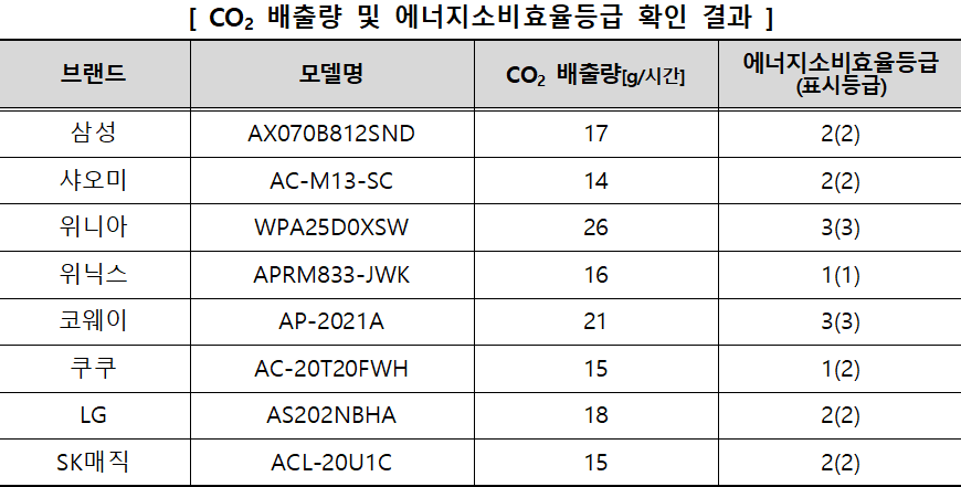 ※ 실제 공기청정기 제품에서 발생하는 이산화탄소 배출량이 아닌 계산식을 이용한 산출값임.