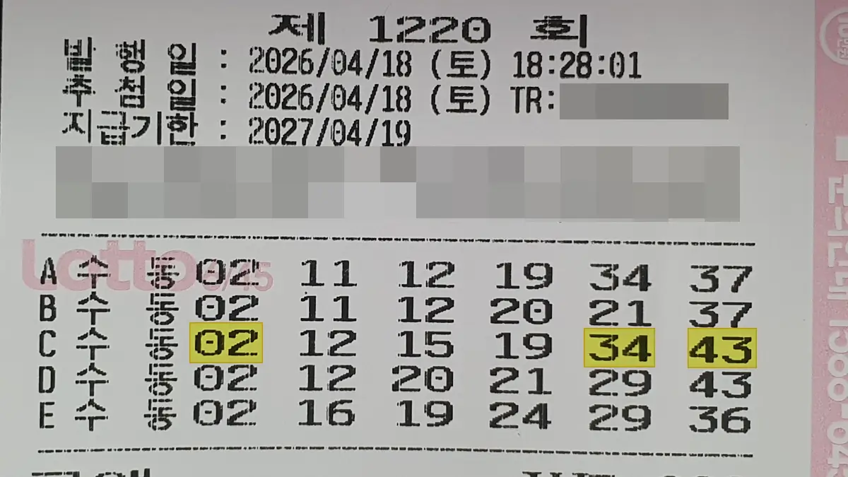 • 6. 로또 1220회 1등 번호 용지 패턴 분석