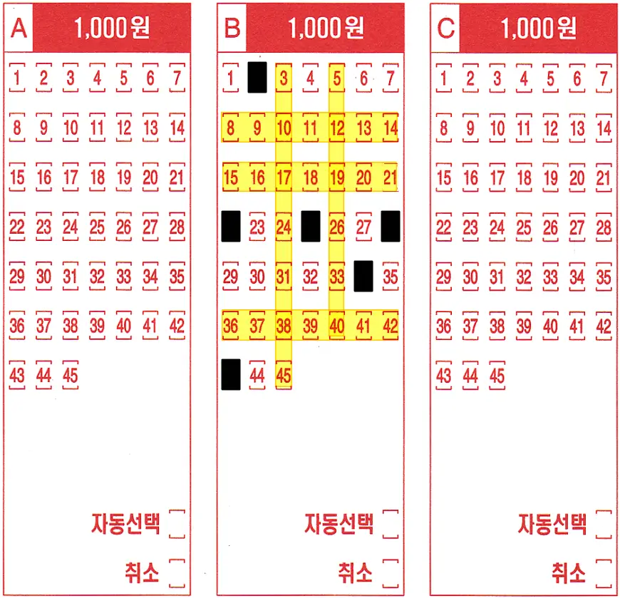 • 로또 번호 조합 방법, 로또용지 패턴, 로또 번호 통계