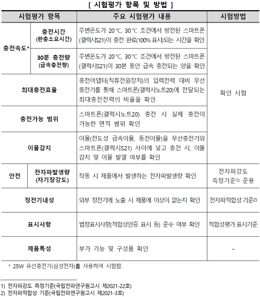 of 13무선충전기 시험평가 대상