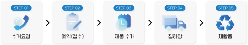※ 대형가전 (냉장고, 세탁기 등)은 1개부터 수거가 가능하며 설치제품 (에어컨, 벽걸이 TV 등)은 미리 분리해야 한다. 다만, 사다리차 등 인력 외 장비가 필요한 경우는 수거 신청이 불가능하다.