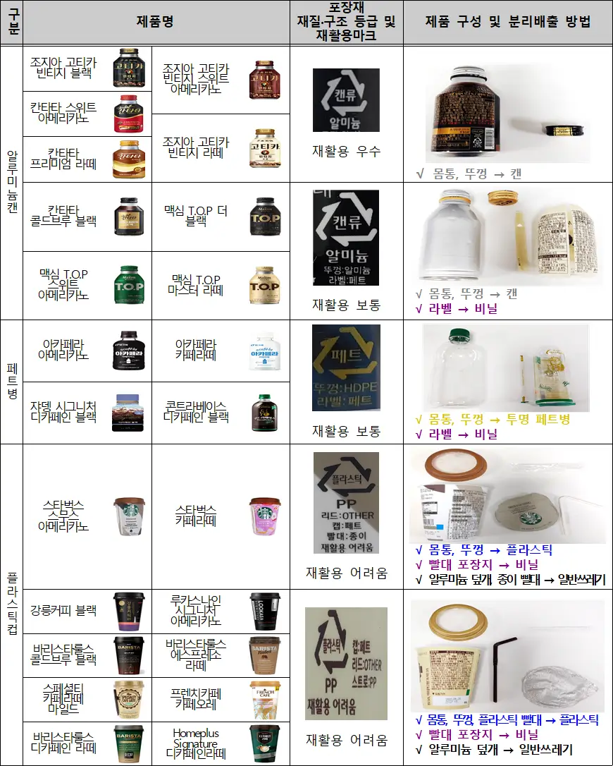 포장재 재활용을 위한 재질 · 구조 등급은 제품별 차이가 있어