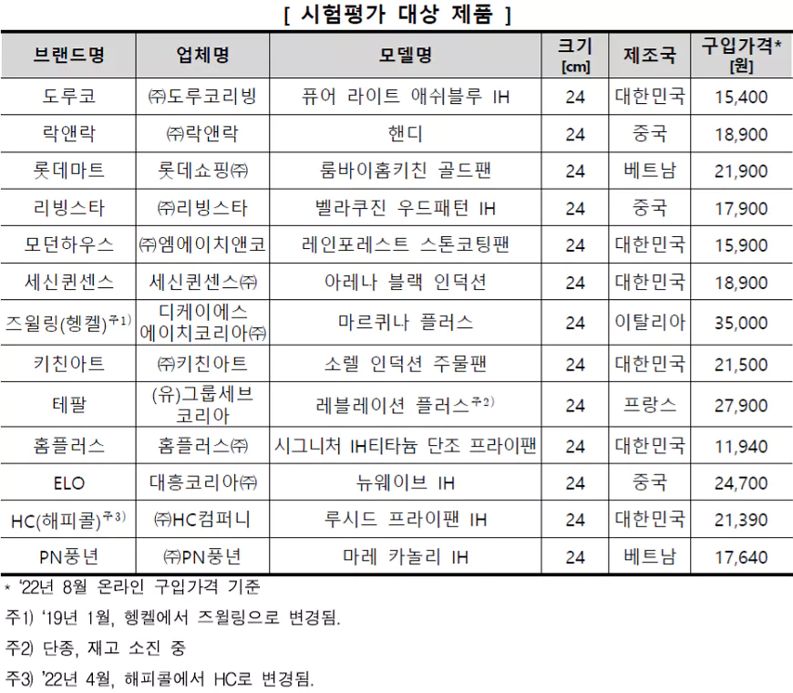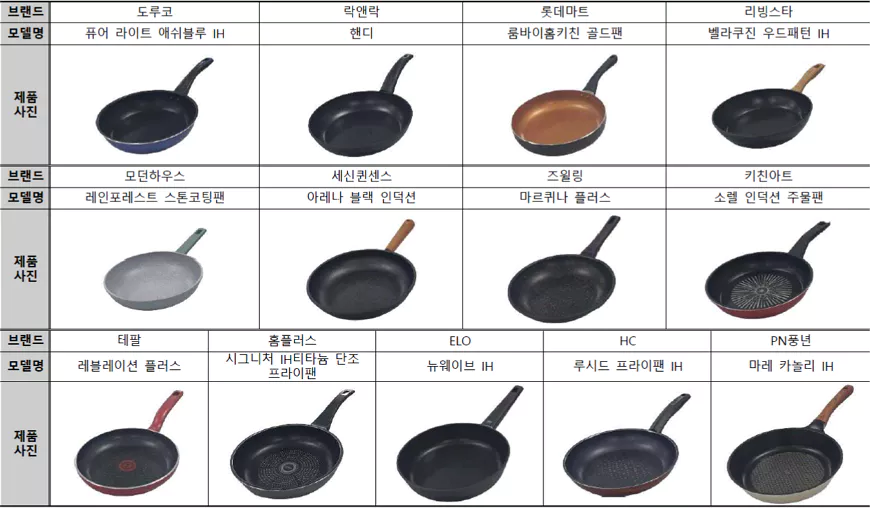 후라이팬 시험평가 대상 제품