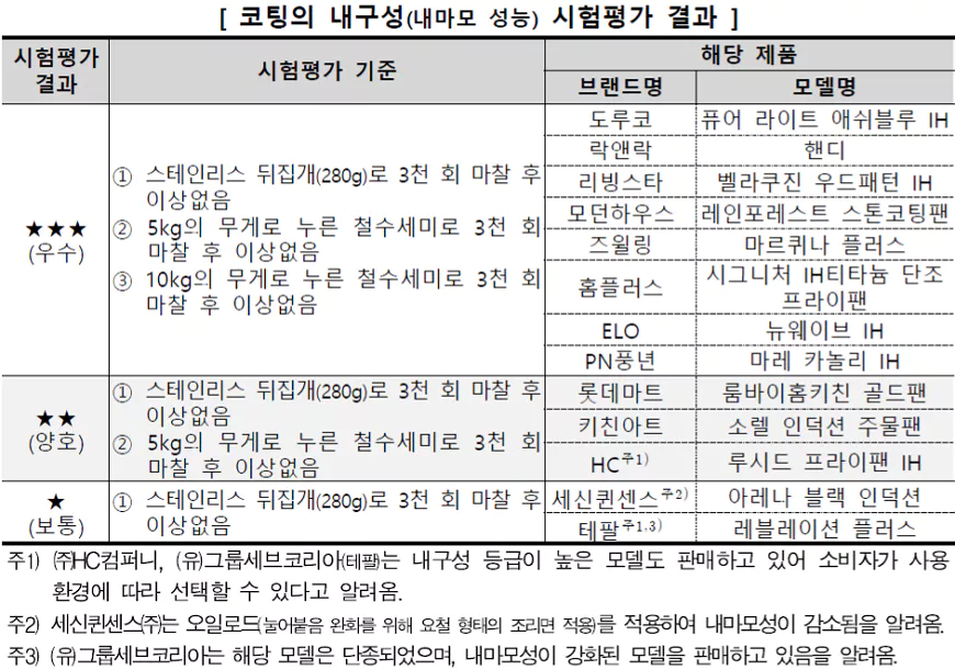 후라이팬 추천 코팅의 내구성 시험평가 결과