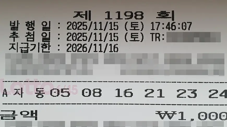 로또 1198회 자동 1천원 구입