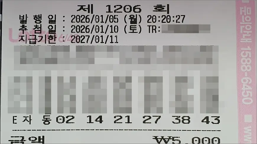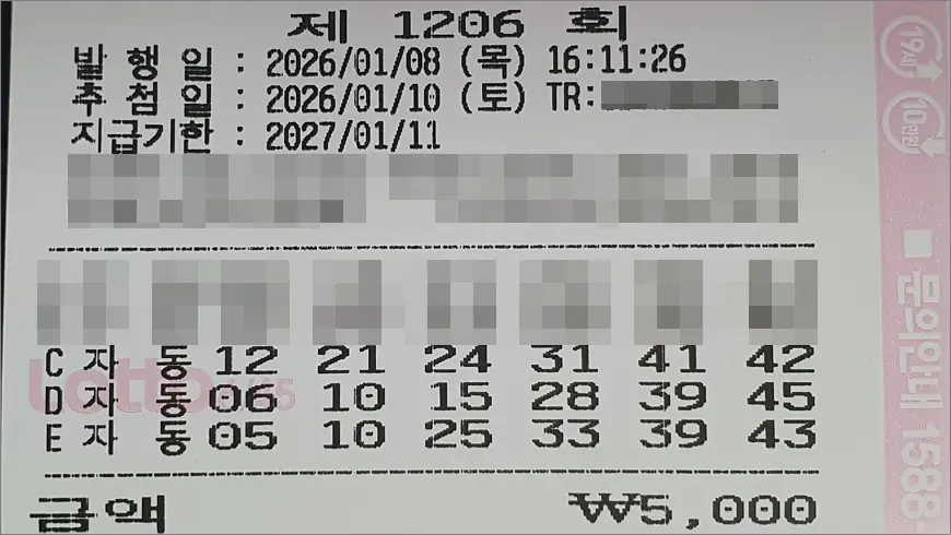 로또 1206회 자동 4천원 구입